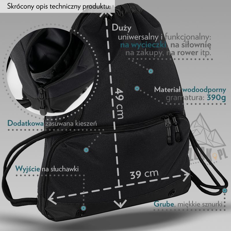 Niezwodny, wygodny i stylowy - Worko-Plecak Premium jest idealnym towarzyszem dla wszystkich, którzy kochają górskie wędrówki i przygody. Niezależnie od tego, czy jesteś doświadczonym wędrowcem czy dopiero rozpoczynasz swoją przygodę, ten plecak zapewni Ci niezbędne miejsce na ekwipunek i niezawodność na każdym kroku.